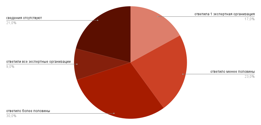 Рис. 2. Сведения о количестве организаций, ответивших на запросы арбитражного суда о возможности выполнения судебной экспертизы.