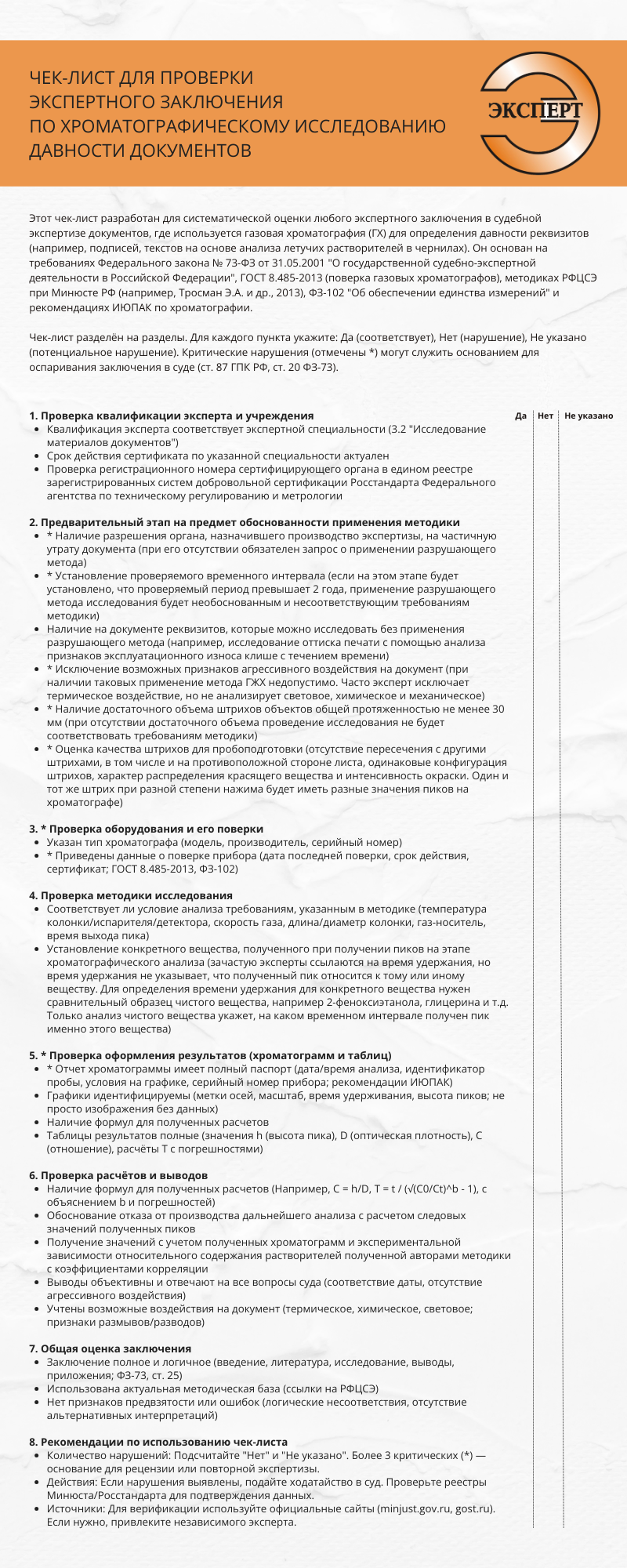 Если у вас на руках уже есть экспертное заключение, внимательно изучите его, используя чек-лист ниже. Если в заключении имеются нарушения, вы имеете право привлечь специалиста для рецензирования, чтобы исключить такое заключение из материалов дела.