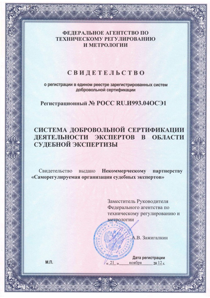 Свидетельство о регистрации СДС