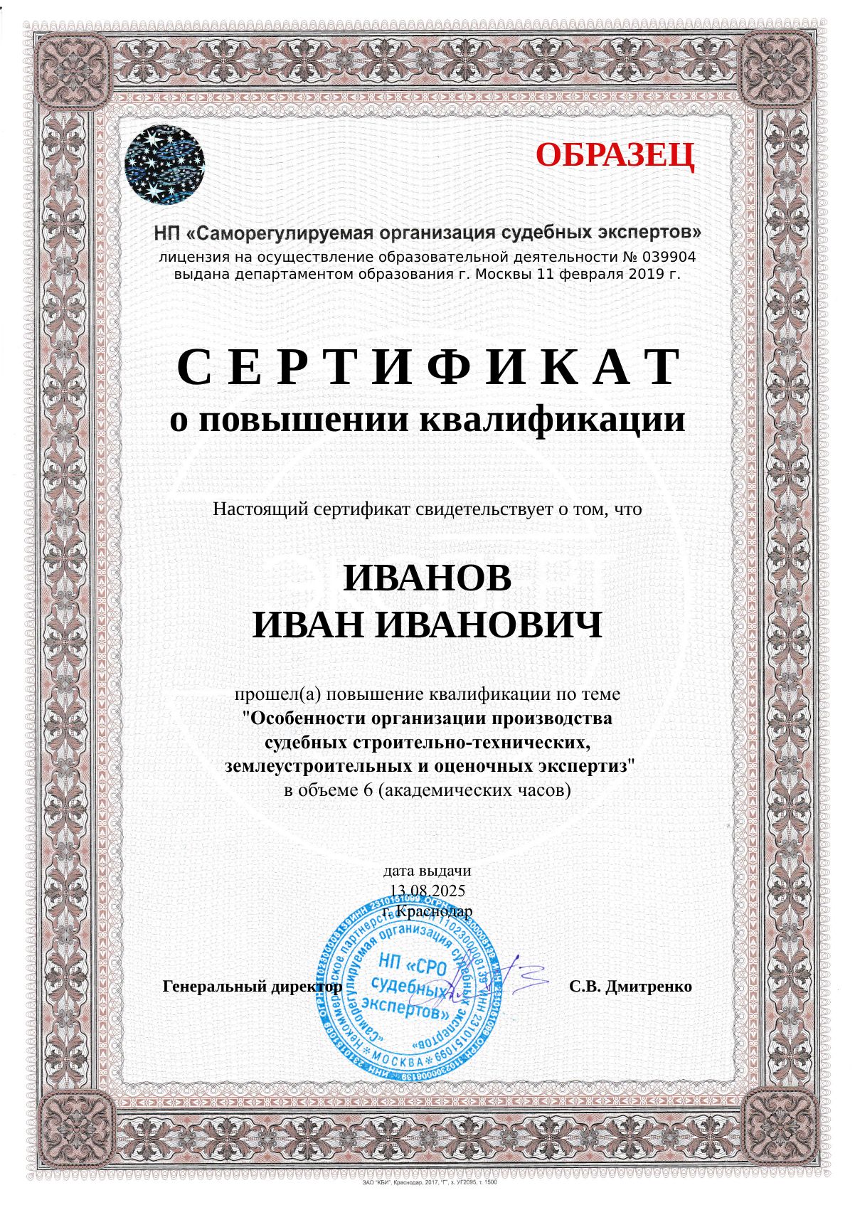 Курс разработан в соответствии со Стандартом профессионального обучения и повышения профессионального уровня адвокатов и стажеров адвокатов. Участие засчитывается Адвокатской палатой Краснодарского края - в количестве 6 академических часов - на основании сведений, указанных в сертификате о прохождении курса повышения квалификации.